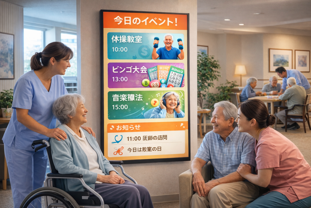 介護施設でのデジタルサイネージ活用|メリットや活用例を紹介