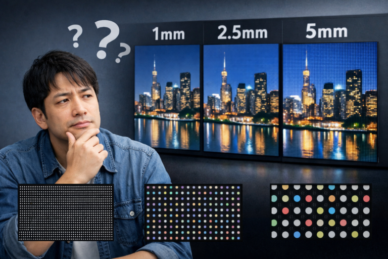 LEDビジョン導入・施工なら全国対応の専門業者|保証付き&スピード対応 ブログ LEDビジョンのピッチ選び|視認距離に適したピッチ目安とは? blog ブログ 2026.02.13 LEDビジョン ピッチ選び メリット LEDビジョンのピッチ選び|視認距離に適したピッチ目安とは? LEDビジョンのピッチ選び|視認距離に適したピッチ目安とは?